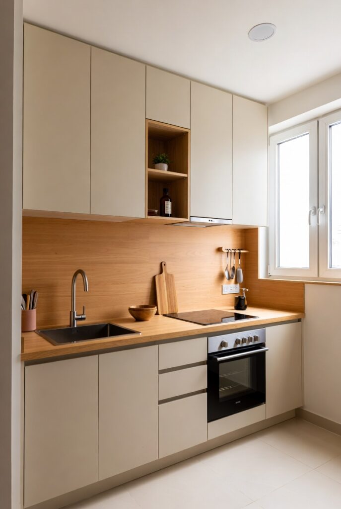 - Usar poucos itens decorativos (ex.: 1 vaso com ervas, 1 tábua bonita encostada na parede).