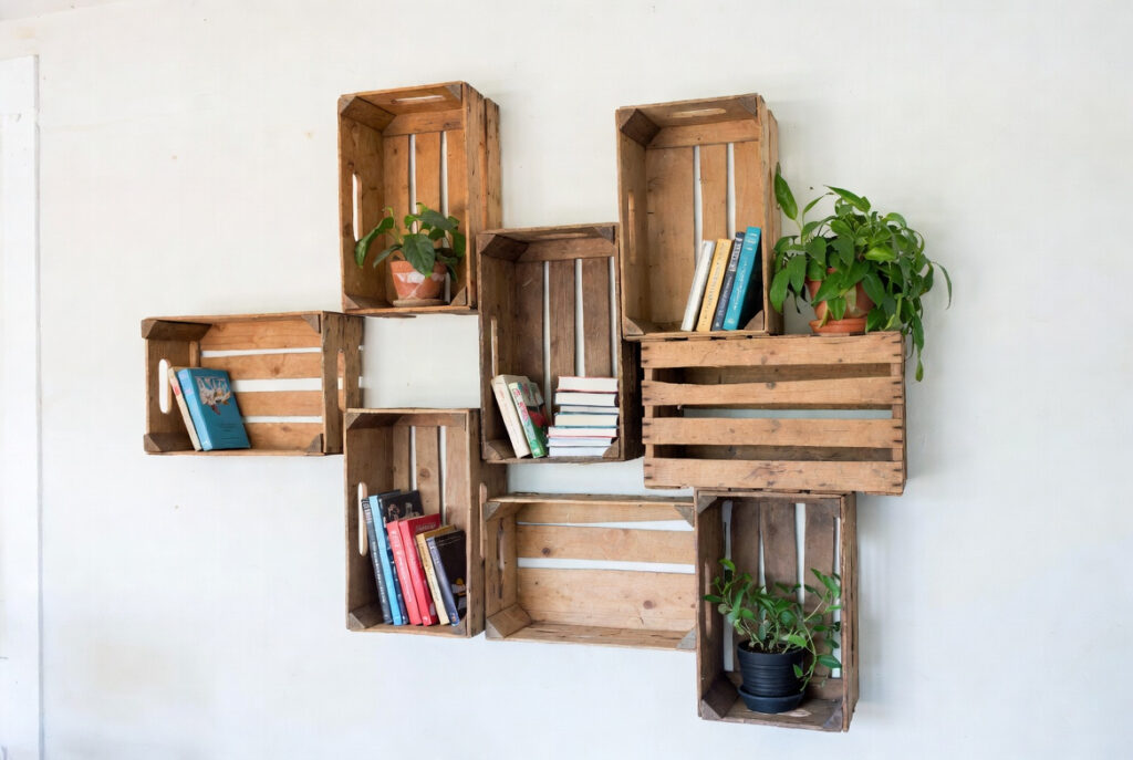 3. Caixotes de feira e caixas de madeira: móveis versáteis e baratos